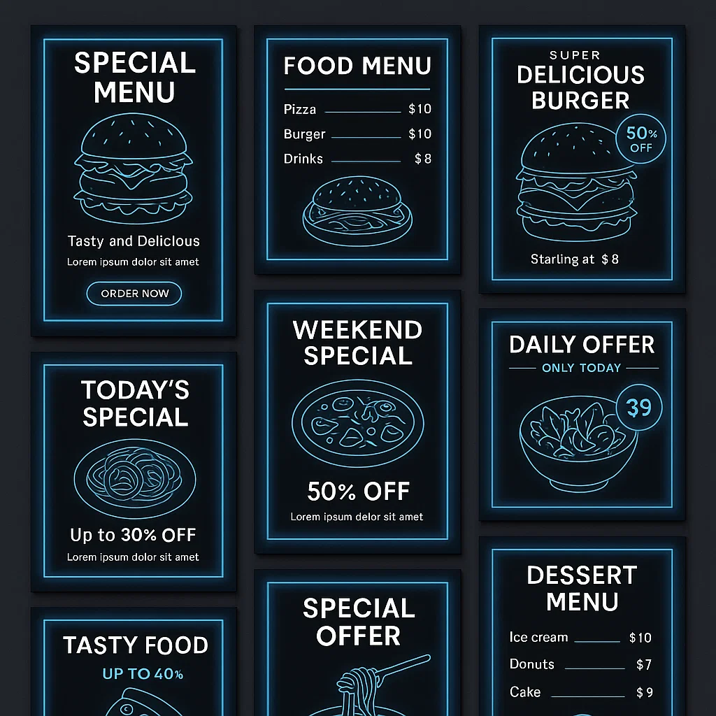 Whether you’re launching a new restaurant, promoting offers, or refreshing your brand, this collection provides everything you need to stand out.